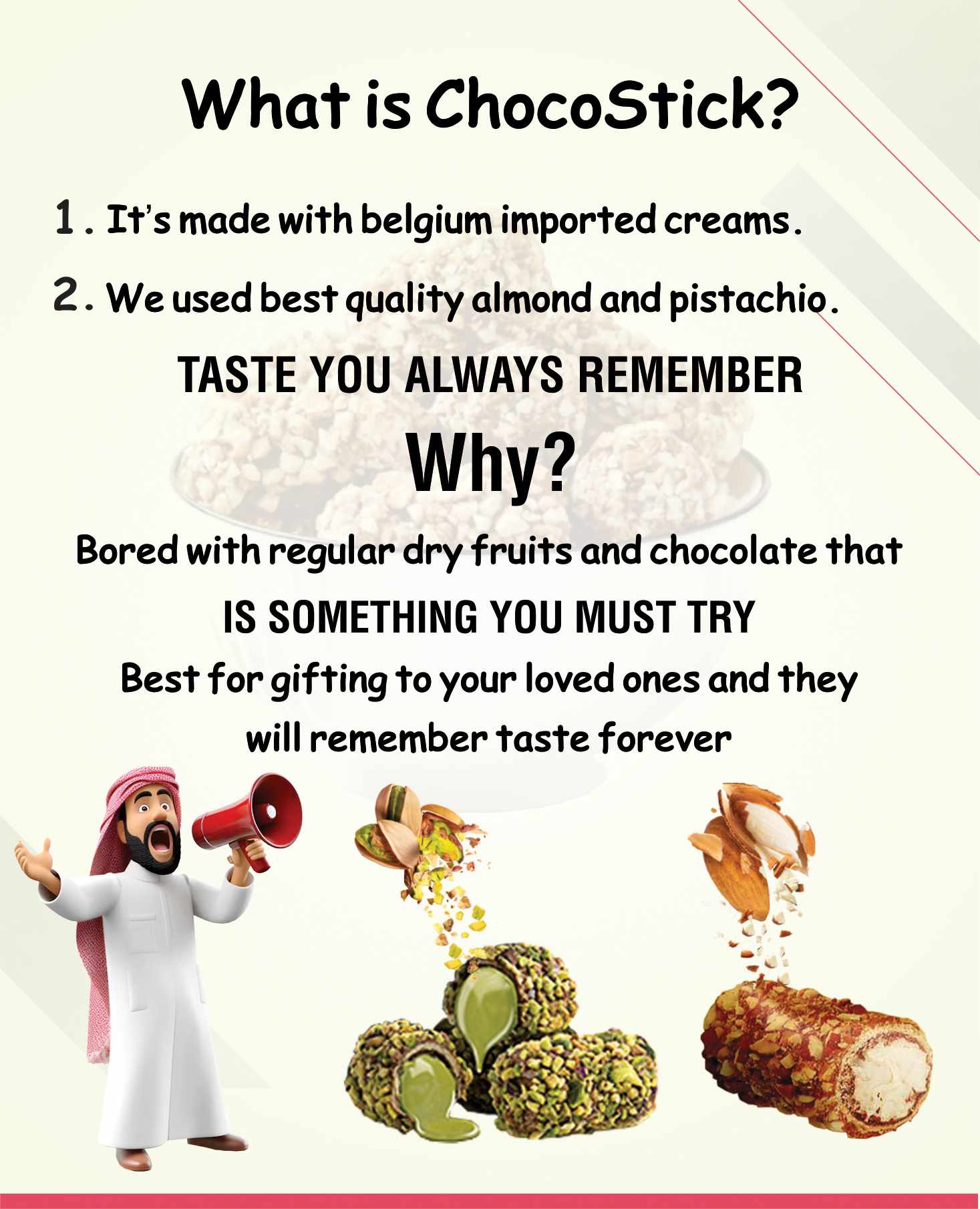 Luxury chocolates: Chocosticks Almond and pistachio flavour ( 500g/1Kg Combo pack)